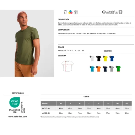 Roly Pack de 10 Camisetas Hombre Multicolor 100% Algodón 155g Manga Corta | Alta Calidad y Comodidad