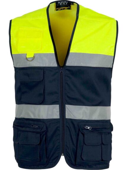 WorkTeam Chaleco Tipo Safari Multibolsillos Bicolor, con Dos Cintas de Alta Visibilidad